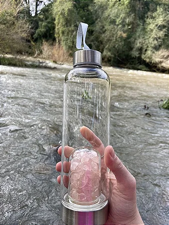 Garrafa de Vidro 500 ml + Cristal da sua Escolha (Ametista, Quartzo Verde ou Quartzo Rosa)